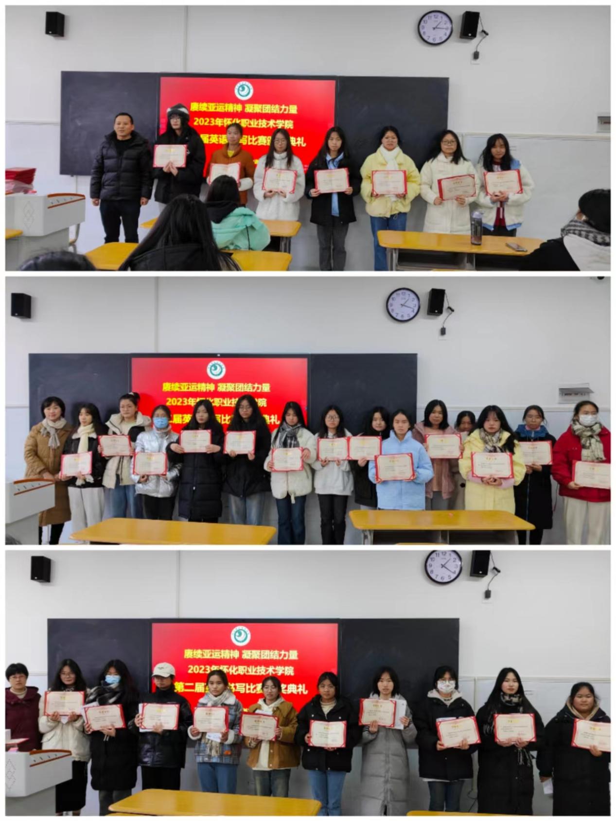 近日,我校成功举办第二届英文书写比赛。共评选出一等奖7名,二等奖14名,三等奖21名,优胜奖26名。活动前期,学校基础课部在全校范围内进行了积极的比赛宣传,极大调动了学生参赛的积极性,共有3713名学生报名参加此次比赛。经过对初赛作品层层筛选,68人晋级最后决赛。本次英文书写比赛不仅丰富了学生们的校园文化生活,给学生提供了一个展示自我的舞台,也培养了学生良好书写习惯。