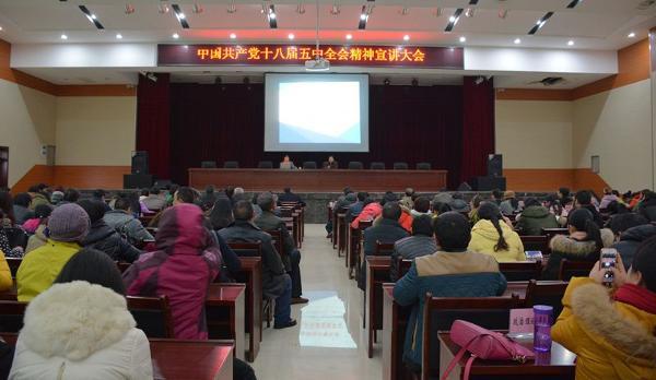2016年元月8日下午,怀化市委党的十八届五中全会精神宣讲团到我院进行集中宣讲活动。我院院领导及全体教职员工听取了宣讲。