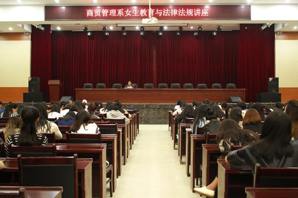 5月10日晚,商贸系于大会议室举办了以“自尊、自爱、自强不息,做自主立有为的新女性”为主题的女生教育与法律法规讲座。商贸系刘新梅书记担任主讲,15届商贸系全体女生参加了本次讲座。
