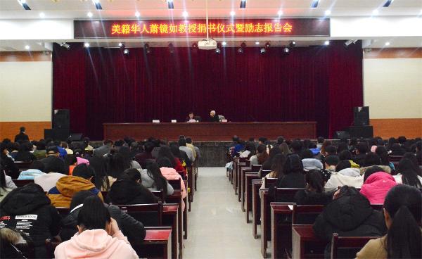 3月21日,美籍华人、著名经济学博士萧镜如冒着丝丝小雨来到怀化职业技术学院,在怀化职院举行了《飞翔的心》赠书仪式及励志报告会。学院党委书记胡佳武、院长王聪田进行了热情迎接,并出席报告会,报告会由学院党委副书记邬国盛主持,近四百名教师学生代表参加。