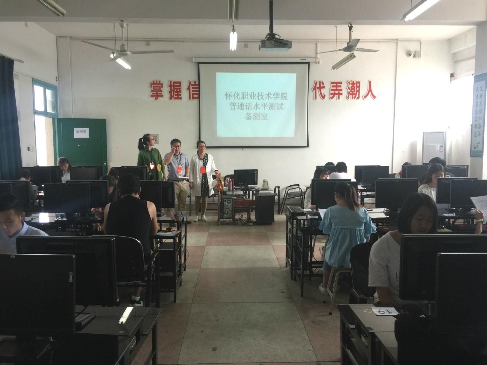 本次普通话水平测试在实训楼507设20套测试设备,为确保考试井然有序,学生以20人为一组,共31组,分时间段进行测试。整个测试分候测——备测——正式测试三个流程。早上七点半,测试站相关教师有条不紊地开始测试工作。考试过程中,来自各个专业的学生积极参考,在候测室主动与测试老师交谈,询问相关注意事项,在备测室认真备考,从而在正式测试中表现出最佳状态。截至下午六点半,测试工作圆满完成。
